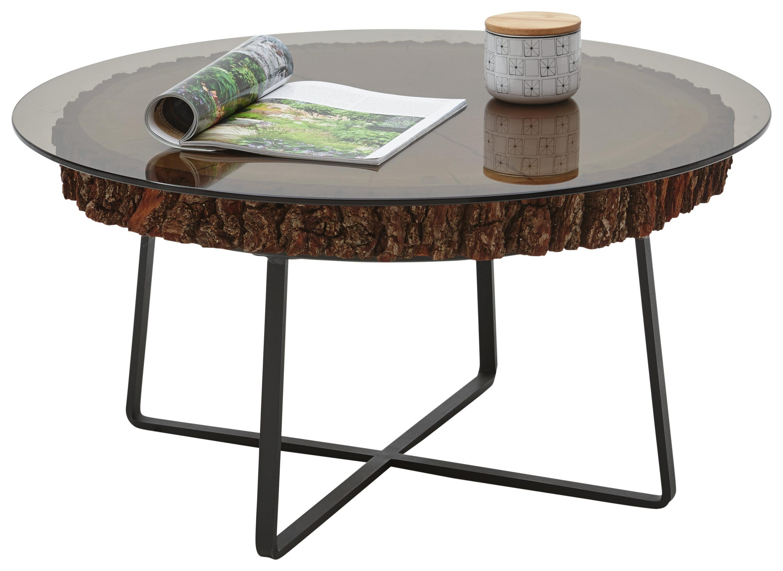 Couchtisch Aus Glas Und Holz Metall Piana Flint Modern Rund