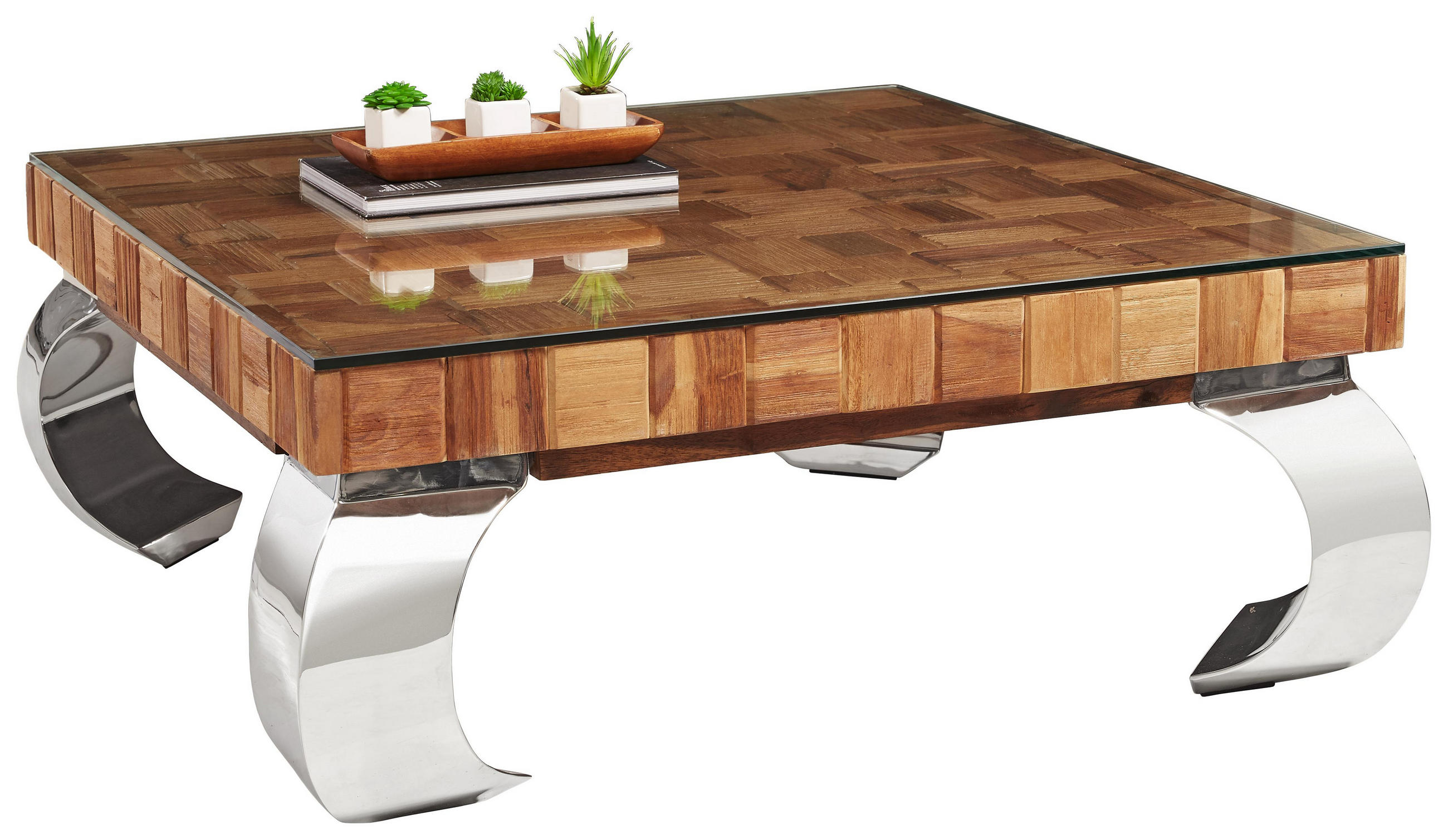 65x65 Couchtisch Aus Holz Glas Metall Babsi