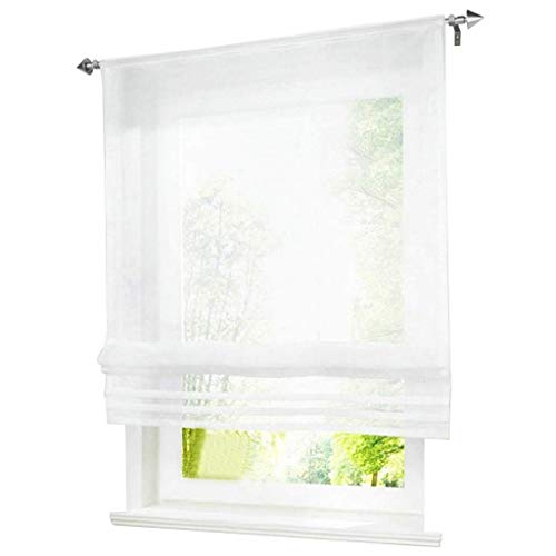 Simpvale Raffrollo Mit Schlaufen Gardinen Voile Romischen Liter Fall Schatten Transparent Vorhang Fur Balkon Und Kuche Weiss 80cm Breite X155cm