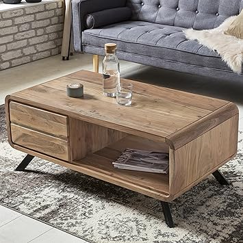 Finebuy Massiver Couchtisch Akazien Massiv Holz Natur Laos 110 X 60 Cm Mit Schublade Tischbeine Metall Wohnzimmertisch Akazie Holztisch Mit Ablage