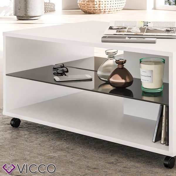 Vicco Couchtisch Merino Weiss Schwarz Sofatisch Kaffeetisch Rollen Ablage