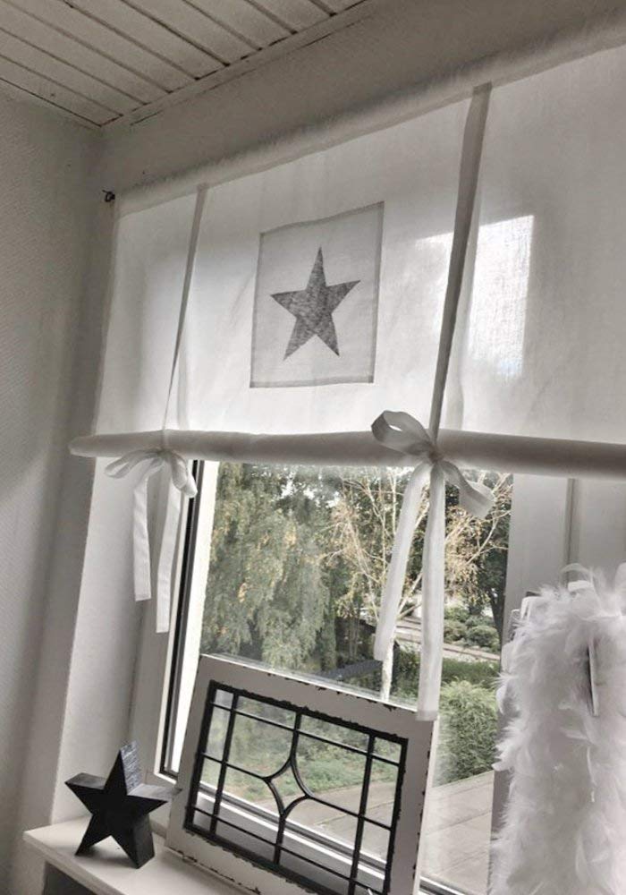 Raffrollo Gardine Stern Weiss Vintage Shabby Chic Kuche