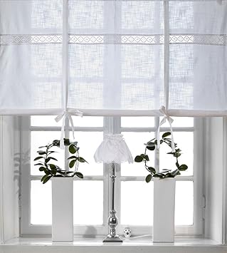 Unbekannt Scheibengardine Raff Gardine Raffrollo Vorhang Sanna 160 X 120 Cm Bxh Bestickt Mit Spitze Weiss Baumwolle Landhaus Shabby French Vintage