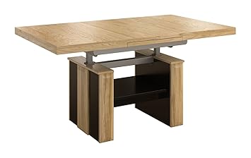 Hohenverstellbarer Couchtisch Topusko 26 Farbe Eiche Schwarz Teilmassiv Abmessungen 61 79 X 130 170 X 80 Cm H X B X T